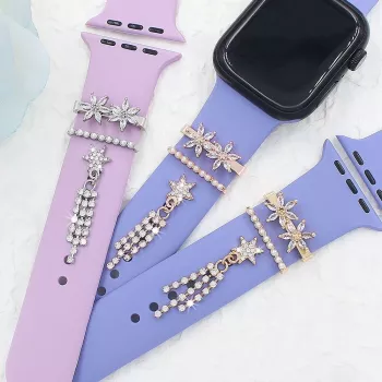 Elegant Metal Charm Rings for Apple Watch Bands - Diamond Decoration Jewelry